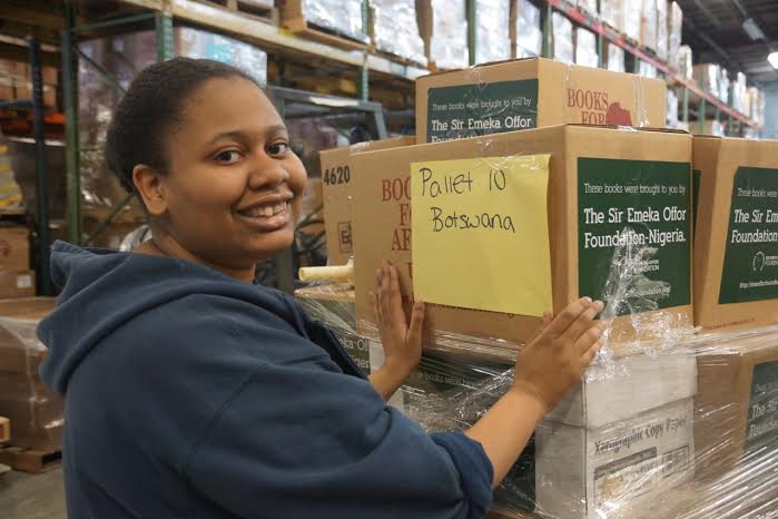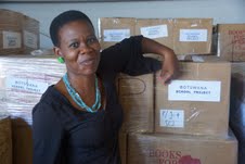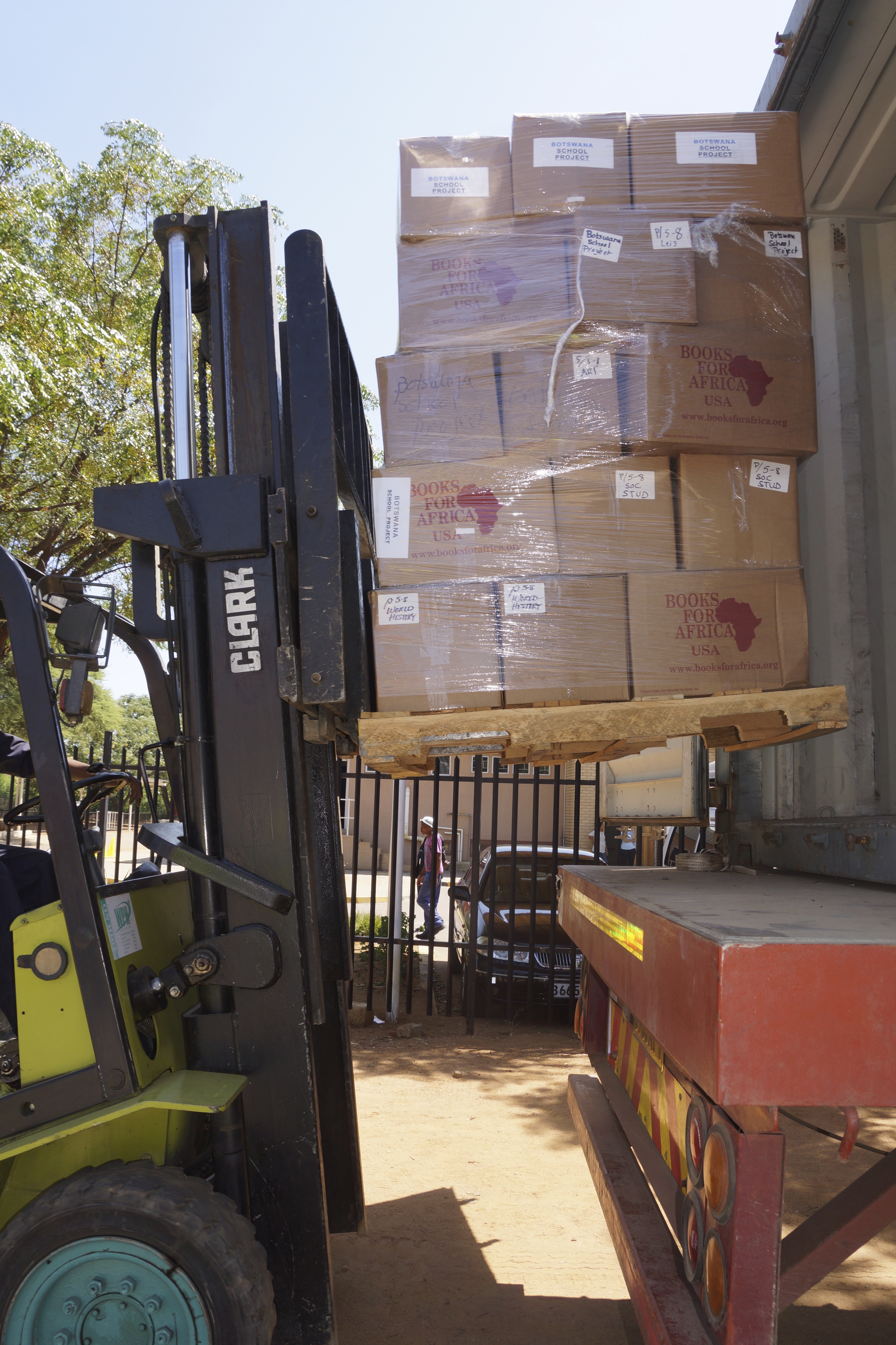 May 2016 Update The container, full of books, left the Atlanta GA warehouse on April 29th on its way to Savnannah Georgia and on to Botswana. The ETA in Gaborone is early June... stay tuned for arrival information. ************** December 2015 Update Great news! The Lillian Goldman Charitable Trust has granted the Botswana Book Project the additional $7,000.00 needed to pay the shipping on another container of books. On behalf of the children of Botswana, I wish to thank the Trust and all of the individual donors who have made this shipment possible. We are busy setting up an ETA of early June for the books to arrive in Gaborone, which means packing the container in April. We have requested 17 pallets of K-8 assorted leisure reading and then a pallet of High School leisure reading. The remaining 2 pallets will be packed for IED in Gaborone. The IED is paying the costs of customs and clearing in Gaborone for the container. Schools and charities in Botswana wishing to receive books can contact Botswana Book Project Partner, Christine Loabile, Head at Baobab School in Gaborone to be added as recipients. cloabile@baobabschool.ac.bw or christineloabile@yahoo.com ****************************** May 2014 Update Pam is now in Botswana awaiting the arrival of the containers. Pam received the government taxes rebate for the 500 solar lamps donated by Bourke Family Foundation. The lights are provided for students in rural areas in Botswana who do not have electricity in their huts to have light to do schoolwork at night. ![]() for more photos of the solar lights in use... click here ****************************** APRIL 9, 2014 Update The two book containers made it safely to Antwerp where they are resting until April 12th when they depart by ship for Durban, South Africa. From Durban, the containers move by rail to Gaborone, Botswana, hopefully arriving by May 5th. After clearing customs, they move by truck to Baobab Primary School, where a crew has been hired to move the books into the school auditorium. We will stack the boxes and piles of Big Books, and wrap a ribbon around a selection of boxes for our ribbon cutting ceremony. The reception (by invitation only) will be held on May 7th, to honor Sir Emeka Offor, the Nigerian Entrepreneur, who has generously covered the shipping costs for both (TWO!) containers of children’s leisure reading books!! The recipients of books (over 88 schools as well as the National Library Book Box program which serves 98 rural village reading rooms) will collect their allocated boxes on May 8,9 & 12 at Baobab School. In three days, approx 60,000 children’s books will be placed throughout Botswana in many cases forming the first library in a village school. Stay tuned for updates on the container’s progress… Pam ******************************************* March 2014 update.... The 40 pallets of books for Botswana are packed! Thank you thank you to the fantastic warehouse staff and volunteers! Below are photos of Langston Hughes High School students filling boxes at the warehouse... ![]() ![]() ![]() ![]() ****************************** FEBRUARY UPDATE Here are some photos of the volunteers in Atlanta fillling boxes and loading pallets!! ![]() Pam Shelton ![]() ![]() Pam Shelton ![]() ![]() ![]() February 20 update.... 15 pallets full.... only 25 more to go!! To see a video of the warehouse loading, please click here *************************** February 1-- The push is on to fill our two Botswana containers provided by the Sir Emeka Offor Foundation of Nigeria by March 10th. The containers can potentially hold 60,000 children's books. My first thought in January was, will there be enough leisure children's books? Then Kirkwood School in St Louis, Missouri stepped up to help....the High School group of students, led by their English teacher, Mrs Karen Ambuehl, put out the request "GOT BOOKS?" to their entire school district. And the book donations came pouring in...TWENTY THREE THOUSAND books so far!!! Then a 16 foot book truck was rented by Karen and her husband, who will drive it to the Books For Africa warehouse in Atlanta, GA on Sunday. There are so many wonderful things about this effort....American Teens reaching out to kids in Africa....An American Librarian leading kids to help others...the whole community supporting the idea and donating their books... I'd like to point out, none of this could ever have happened without Mr Tom Warth's vision of ending the Book Famine in Africa. His creation of Books For Africa, which has guided every book container to Africa, enables projects like The Botswana Book Project, to get the books over to where they are so needed. All I can say is, this is America at it's best! Thank you Kirkwood kids! Thank you Books For Africa! And thank you Sir Emeka Offor Foundation for providing Botswana with two containers! ![]() ![]() ![]() ![]() ![]() ![]() ![]() ************************************* UPDATE FOR SEPTEMBER 2013 Wonderful news!! Books For Africa and the Sir Emeka Offor Foundation will provide the Botswana Book Project with two (2) 40- foot containers of books delivered to Gaborone port authority. Stay tuned to find out the exact ETA, which will be sometime in April/May 2014. We will need as many gently used books (Toddler board books to Young Adult leisure reading, please!) as we can collect and deliver to the Atlanta Books For Africa warehouse. The book donations can arrive between January 1 to February 16th…can you help? Please consider having a neighborhood (or school or church) Book Drive to help us collect the 50,000 books we hope to send! Write to me if you need more details! paminafrica@gmail.com Best, Pam ************************************ JUNE 2013 UPDATE Donations are coming in and we are now at 15% of the cost to cover shipping another container of books in 2014. Thank you to all who have helped! I have heard from a few more of the Peace Corps volunteers in Botswana villages about what the books mean to the