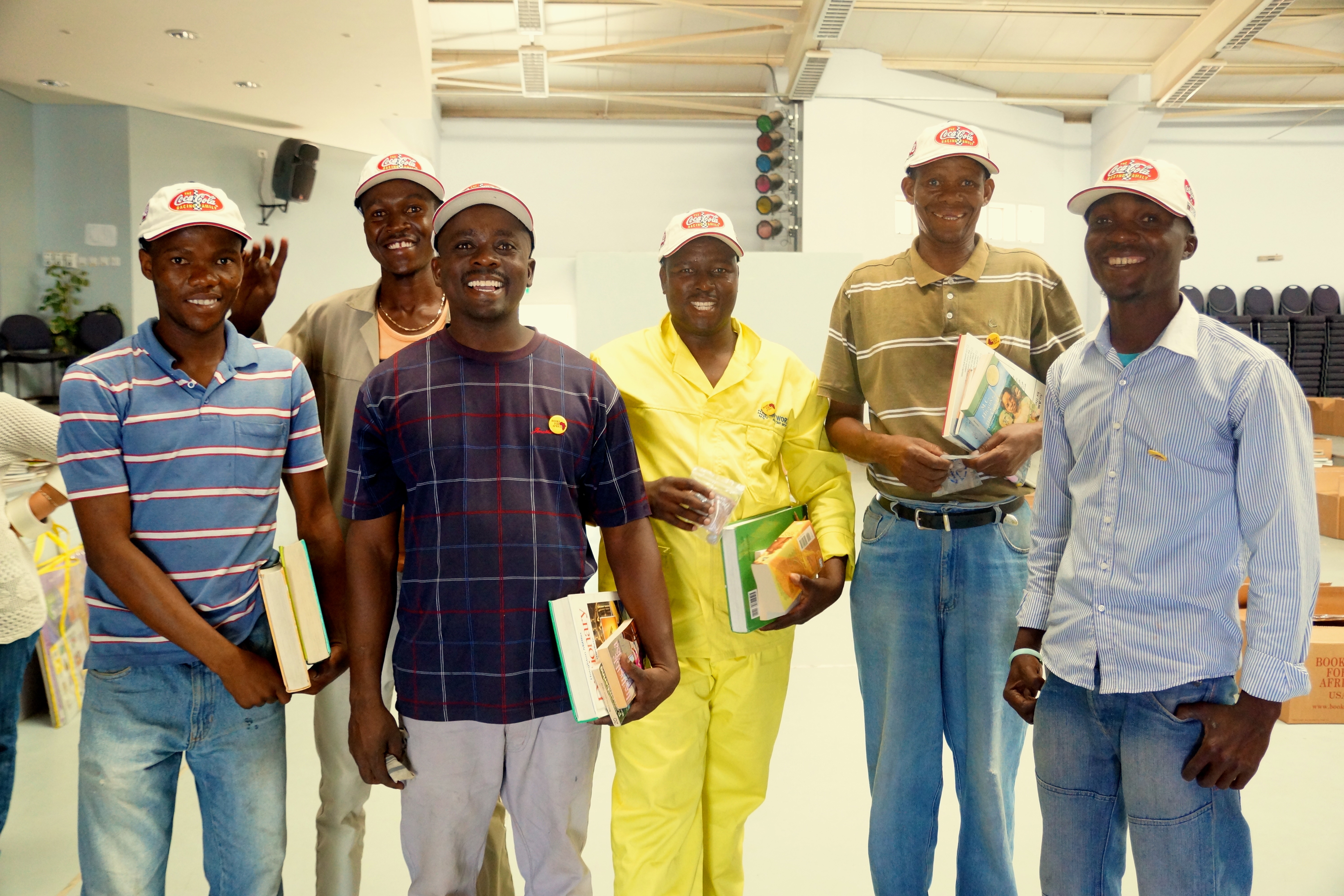 ![]() ![]() The forklift also took the crate with the wheelchair and loaded it on the truck to Maun. ![]() Christine Loabile (head at Baobab School and BBP partner) and I cheered as the various trucks headed off! ![]() I had hired six casual laborers to assist in unloading the Baobab School pallets and putting boxes in rows on the floor of the hall, as we have done in the past. ![]() The workmen were thrilled with extra gifts of Coke hats and books for their families. Most chose dictionaries and novels. All afternoon and for the next two days, Baobab classroom teachers and Peace Corps volunteers combed the piles of books, selecting the ones they wanted for their classrooms and school libraries.